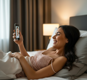 El truco es capturar la mayor parte de su cuerpo posible, desde la cabeza hacia abajo. Puede que requiera algo de práctica, pero una vez que lo dominen, esto crea una sensación de “estar durmiendo juntos” para el usuario, haciéndolo sentir mucho más cerca de ustedes. Si aún no han probado este ángulo, ¡inténtenlo ahora mismo! Si ven que los usuarios reaccionan bien, ¡conviértanlo en su sello personal!